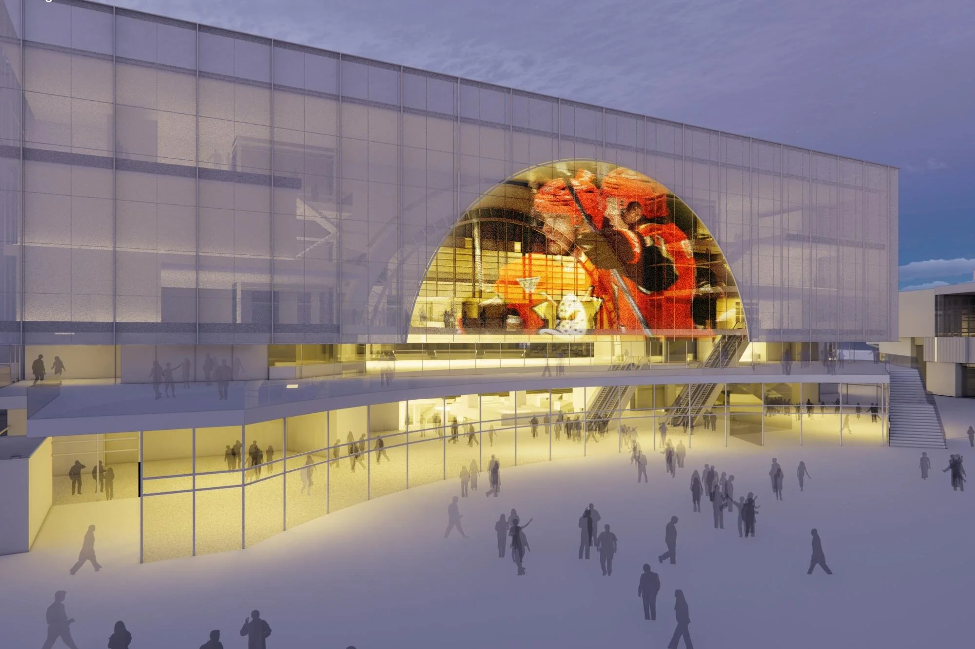 An elegant and vibrant experience center for the new Flames NHL arena.
